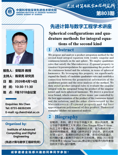 【2026年4月14日 数字所/计算机学院】Spherical configurations and qua-drature methods for integral equa-tions of the second kind
