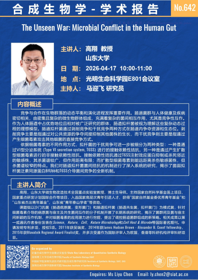 【2026年4月17日 合成所/合成生物学院】The Unseen War: Microbial Conflict in the Human Gut