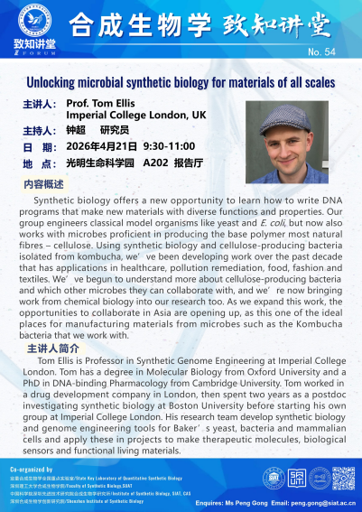 【2026年4月21日 深圳合成生物学创新研究院/合成生物学研究所/合成生物学院】Unlocking microbial synthetic biology for materials of all scales