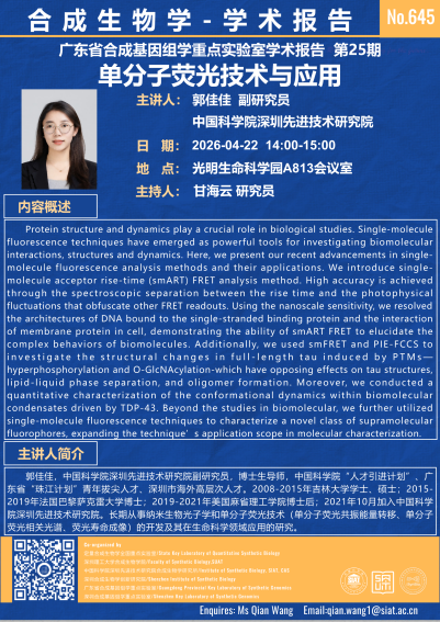 【2026年4月22日 合成所/合成生物学院】单分子荧光技术与应用
