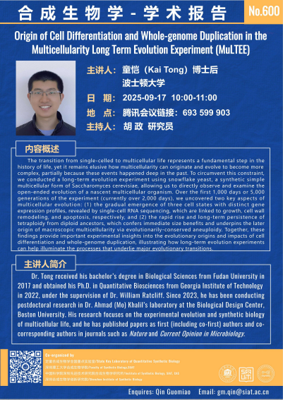 【2025年9月17日 合成所/合成生物学院】Origin of Cell Differentiation and Whole-genome Duplication in the Multicellularity Long Term Evolution Experiment (MuLTEE)