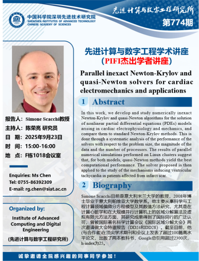 【2025年9月22日 数字所/计算机学院】Parallel inexact Newton-Krylov and quasi-Newton solvers for cardiac electromechanics and applications