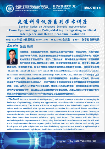 【2025年9月24日 科学仪器研究所(筹)】From Epidemiology to Policy-Making: Integrating Artificial Intelligence and Health Economic Evaluation