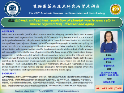 【2025年8月29日 医药所】Intrinsic and extrinsic regulation of skeletal muscle stem cells in muscle regeneration, diseases and aging
