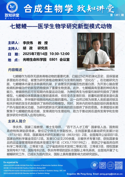 【2025年7月14日 深圳合成生物学创新研究院/合成生物学研究所/合成生物学院】七鳃鳗——医学生物学研究新型模式动物