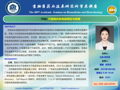 【2025年5月30日 医药所】代谢组织的免疫调控与疾病