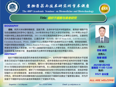 【2025年5月29日 医药所】组织干细胞与衰老研究