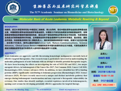 【2025年12月25日 医药所】Molecular Basis of Acute Leukemia: Metabolic Rewiring & Beyond