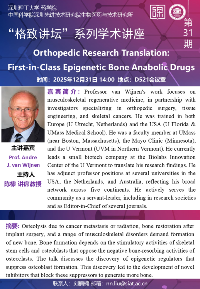 【2025年12月31日 药学院/医药所】Orthopedic Research Translation: First-in-Class Epigenetic Bone Anabolic Drugs