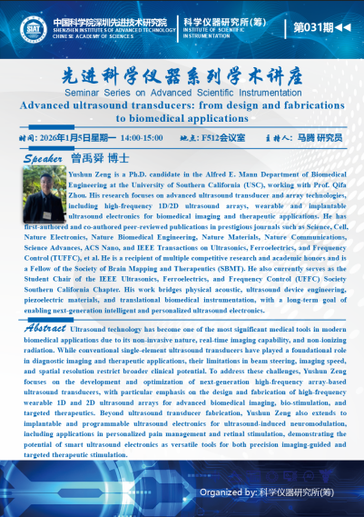 【2026年1月5日 科学仪器研究所(筹)】Advanced ultrasound transducers: from design and fabrications to biomedical applications