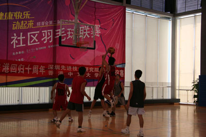 今年七月一日,是香港回归祖国十周年纪念日。十年来,香港特别行政区在“一国两制”“港人治港”的方针指引下,保持了繁荣稳定,政通人和的良好局面。为庆祝这一即将到来的民族喜事,6月16日下午一点半,深圳先进技术研究院篮球队特邀香港中文大学篮球队在南山社区半山中心球馆进行了院篮球队组建以后的首场友谊比赛。