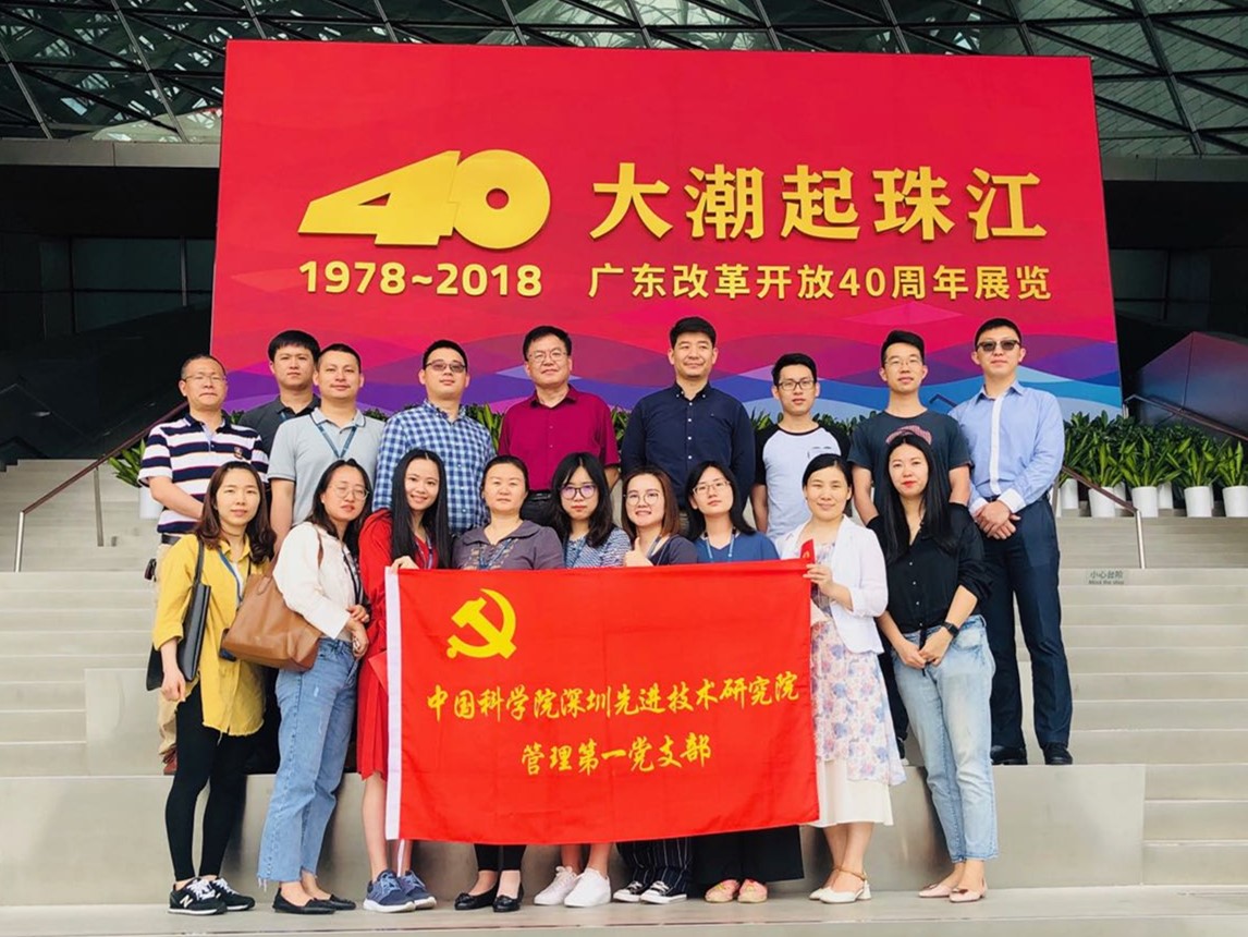 为深入学习贯彻习近平总书记视察广东重要讲话精神,近距离感受广东改革开放40年来的伟大变革,激发新时代职工的新担当、新作为,4月28日,中国科学院深圳先进技术研究院管理第一党支部组织党员前往深圳改革开放展览馆,参观“大潮起珠江——广东改革开放40周年展览”。