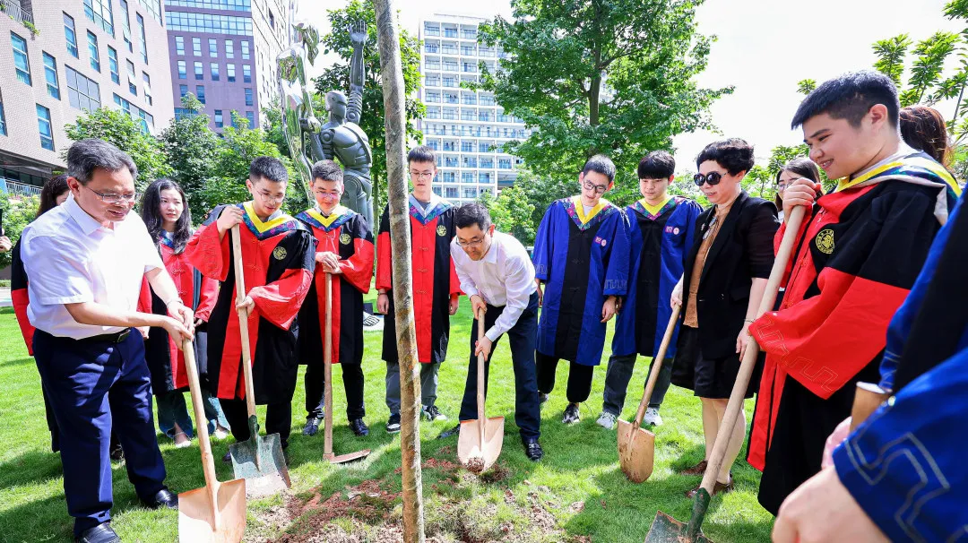 临别之际,2024届毕业生们还与恩师一起,在美丽的SIAT校园捐出一本书、种下一棵树,留下难忘的毕业合照。王筑则以“铭记‘两弹一星’精神,争做新时代科技强国的践行者”为题,为毕业生们做了一场毕业思政课。