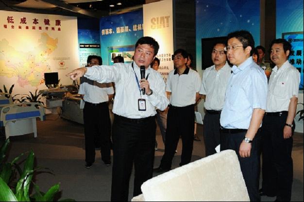 7月12日,无锡市委常委,无锡市新区工作委员会书记许刚一行60多人赴中国科学院深圳先进技术研究院交流。许刚观看了先进院视频宣传片,并参观了成果展示厅和部分实验室。先进院院长助理毕亚雷、综合处处长王冬陪同参观交流。