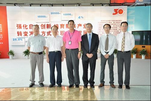 9月16日,香港天文台台长岑智明,在深圳市气象局副局长兰红平的陪同下一行8人来到中国科学院深圳先进技术研究院,就深港业务合作进行交流。岑智明着重参观了数字所超算中心及先进院成果展厅和实验室,先进院副院长许建国接待了来宾一行。