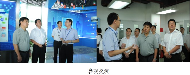 罗强、林书成等首先参观了先进院成果展示厅,科研处副处长袁海向来宾一行详细介绍了先进院的定位、人才引进,研究生教育、产业化等方面的情况。来宾一行还参观了光伏太阳能、神经工程、可视计算等实验室。