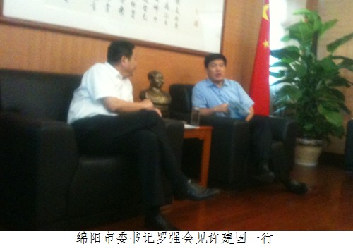 绵阳市对先进院访问十分重视,会议前夕,绵阳市委书记罗强专门会见了许建国一行,就先进院作为绵阳人才培养基地和产业发展的技术依托单位,积极与绵阳市开展科技创新、科技成果转化等战略合作进行了深入的交流讨论,达成了广泛的共识,许建国向罗强书记介绍了先进院在低成本健康、风光互补新能源等项目的进展。