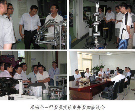 邓宗全教授一行参观了成果展示厅,袁海向来宾一行详细介绍了先进院的定位、科研成果、研究生教育、产业化等方面的情况。随后,邓宗全教授一行首先参观了精密工程研究中心实验室,邓宗全教授作为广东省中国科学院全面战略合作项目“高速列车铝蜂窝吸能器的关键技术研究及产业化”项目总负责人检查了先进院精密工程研究中心承担的子课题的完成情况,对吸能器成套加工工艺及装备的研究进展表示满意,并提出宝贵的指导意见。邓宗全教授一行还参观了光伏太阳能、认知技术、智能仿生、神经工程等实验室,对先进院在科技创新、科研成果转化等方面所取得的成绩表示赞赏。