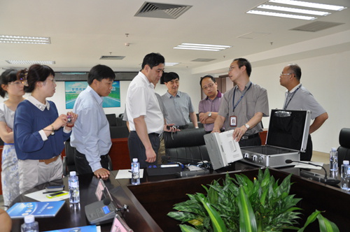 来宾听取先进院基本情况后,重点参观了MRI、光伏太阳能、神经假肢与低成本智慧健康家庭管理系统实验室,并就具体问题与科研人员进行了交流。