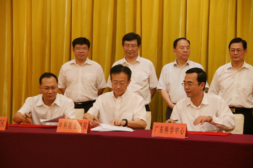 中国科学院院长白春礼,广东省省长朱小丹,中国科学院副院长施尔畏、詹文龙、王恩哥,广东省副省长陈云贤等出席会议并见证签约。