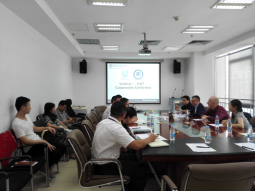 10月10日下午,联合利华集团(上海)研发中心主任、副总裁Dr. Manfred Aben及联合利华(上海)研发中心开放创新总监Dr. Mason Wang两位代表来到中国科学院深圳先进技术研究院进行调研考察。科研处副处长张鹏接待了来宾一行,深圳创新设计研究院相关人员陪同考察。