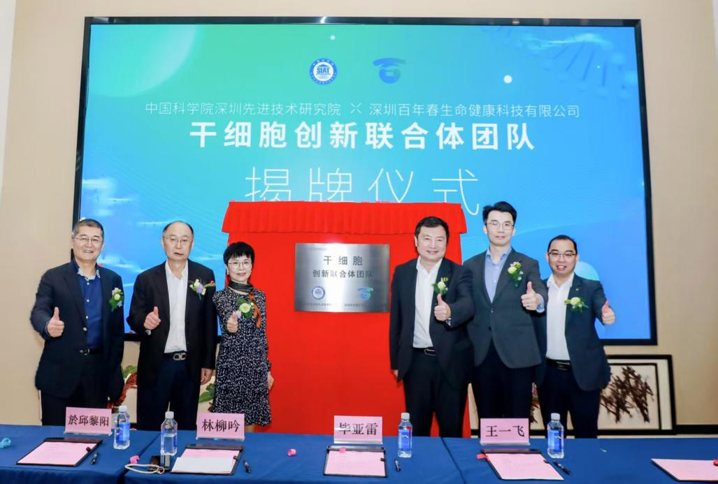 3 月 28 日,中国科学院深圳先进技术研究院(“深圳先进院”)与深圳百年春生命健康科技有限公司(“百年春”)宣布共同组建“干细胞”创新联合体团队,揭牌仪式在罗湖区中欧创新医药与健康研究中心(“中欧医药中心”)举行。深圳先进院发展处处长毕亚雷、副处长黄小华、医药所研究员兼中欧医药中心总经理於邱黎阳;百年春董事长林柳吟、总经理黄青;特邀嘉宾俄罗斯工程院外籍院士王一飞等出席活动并为创新联合体揭牌。
