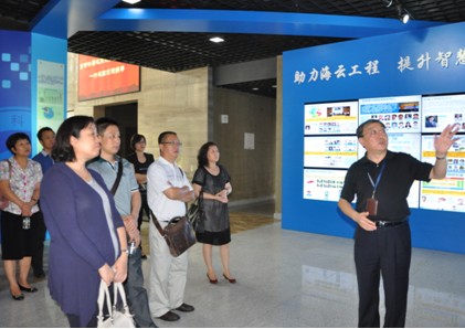 10月11日,中国科学院重庆绿色智能技术研究院袁家虎院长一行来先进院参观交流。先进院副院长许建国热情接待了来宾一行。来宾一行参观了先进院成果展厅和光伏太阳能、可视计算等实验室。双方还就科研、教育、产业化等领域的交流合作进行了沟通洽谈。