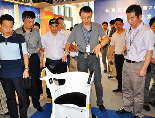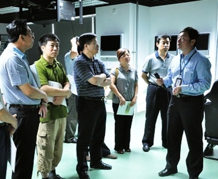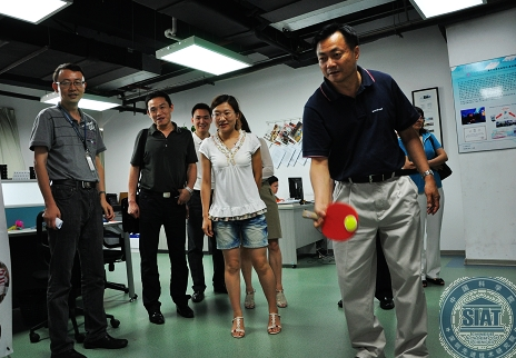 7月13日,吉林省科技系统一行20多人赴中国科学院深圳先进技术研究院交流。在504观看先进院视频宣传片后,在先进院院长助理毕亚雷的陪同下,参观了院成果展示厅和部分实验室。参观可视计算实验室先进院院长助理毕亚雷(左)解答来访者提问