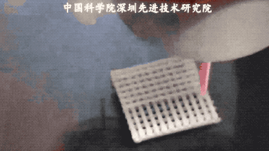 △打印机及打印的材料样品(Bioscaffolder3.1)(图由先进院生物打印团队的阮长顺博士提供)