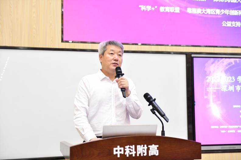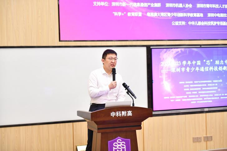 5月27日,2022-2023学年中国“芯”助力中国梦——深圳市青少年通信科技创新大赛启动仪式在深圳理工大学附属实验高级中学(以下简称“中科附高”)举办,以线上线下结合的方式开展。光明区教育科学研究院院长彭红玉、中国科学院深圳先进技术研究院(简称“深圳先进院”)综合处副处长韩汶轩、中科附高校长宋如郊等出席活动并致辞。深圳市教育局、中国共产主义青年团深圳市委员会、中国通信工业协会等指导单位、协办单位、支持单位、公益支持单位代表,深圳市各区中小学科学教师、信息化教师代表参加本次启动仪式。