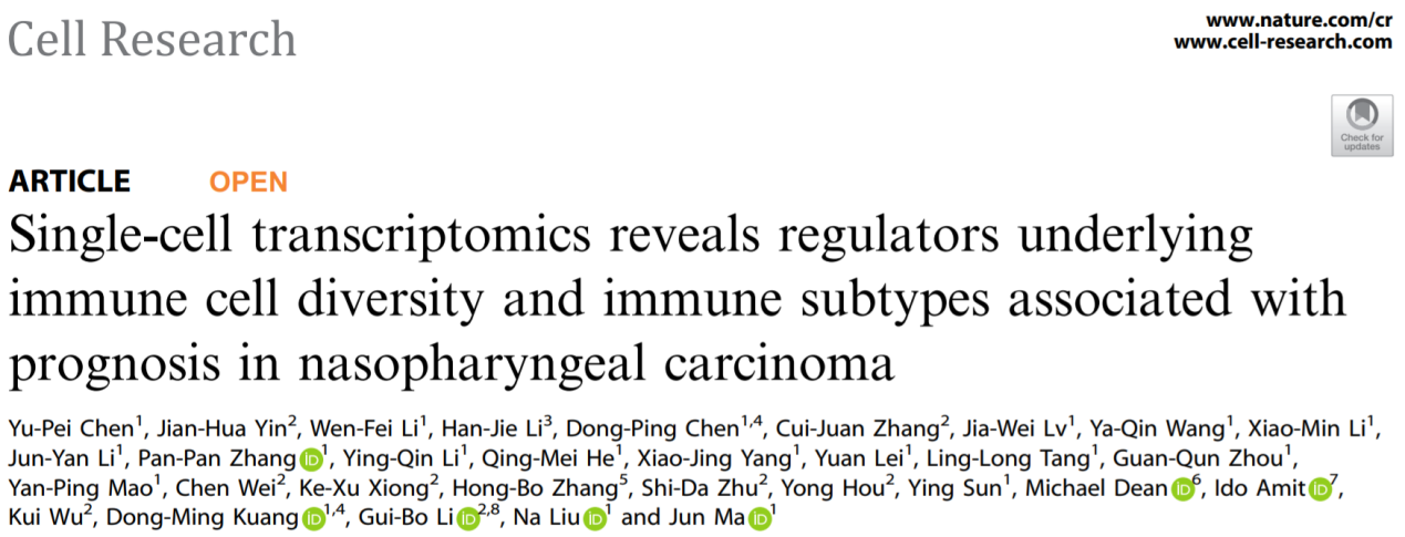 7月20日,中山大学肿瘤防治中心、深圳华大生命科学研究院、中山大学生命科学学院与中国科学院深圳先进技术研究院等单位合作完成的最新研究成果Single-cell transcriptomics reveals regulators underlying immune cell diversity and immune subtypes associated with prognosis in nasopharyngeal carcinoma在Cell Research(IF 20.5)杂志上在线发表。这项工作首次从单细胞水平上系统全面地构建了鼻咽癌的肿瘤微环境图谱,对鼻咽癌肿瘤细胞的异质性和免疫细胞的多样性进行了深入分析,鉴定了一系列与患者预后密切相关的分子特征及潜在的治疗靶点。该研究在单细胞水平上揭示了鼻咽癌的细胞异质性,为鼻咽癌的精准治疗奠定了新的基础。