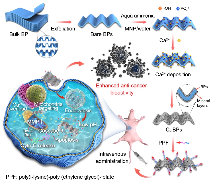 近日,中国科学院深圳先进技术研究院材料所(筹)材料界面研究中心喻学锋研究员课题组在开发天然生物活性纳米治疗制剂领域取得新进展。相关工作Calcium Phosphate Mineralized Black Phosphorous with Enhanced Functionality and Anticancer Bioactivity发表于在材料领域国际权威期刊Advanced Functional Materials上(影响因子16.836)。论文共同第一作者是潘婷博士、硕士研究生付文和暨南大学辛洪宝教授,通讯作者是深圳先进院周文华副研究员和喻学锋研究员。