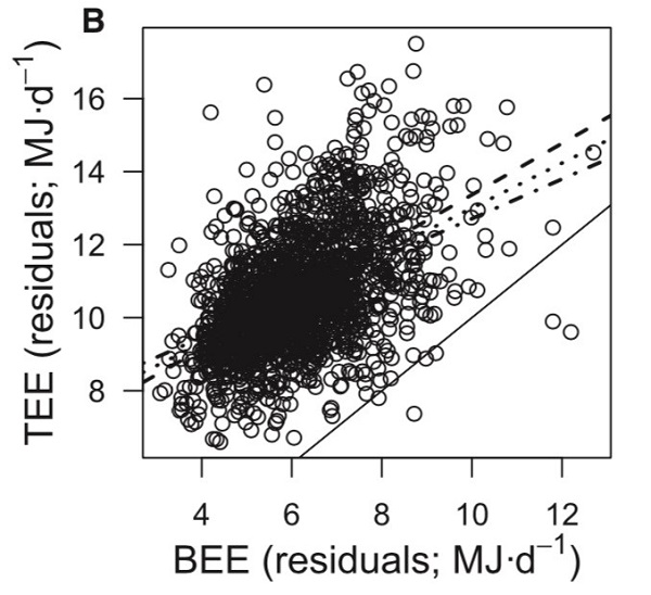 “造成这种补偿效应有两种可能性,一种可能是由于运动增加了食欲导致吃的更多,另一种可能是运动减低了人体其他方面的能量支出,比如静息代谢,以降低运动的能量成本。”Speakman表示。
