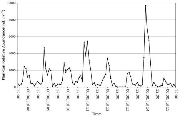 图6 反映浮游生物昼夜垂直迁徙现象的每小时相对丰度时间序列