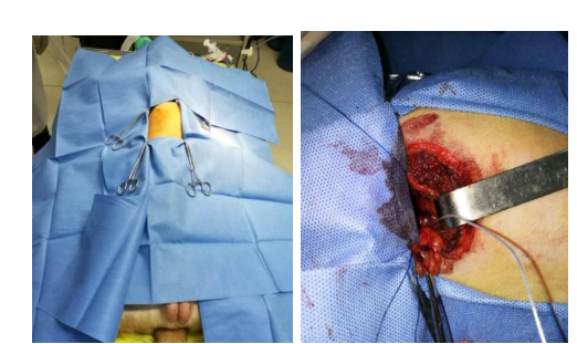 团队构建犬的慢性房颤动物模型,分析无创体表心电标测和有创心外膜心电标测系统采集的心电信号的相关性。我们通过经颈静脉介入(图10)和右外侧开胸小切口(图11)两种方法建立快速起搏右心房的犬慢性房颤模型