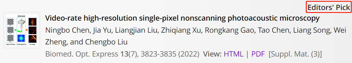 Biomedical Optics Express | 深圳先进院高速光声显微成像技术入选期刊亮点推荐