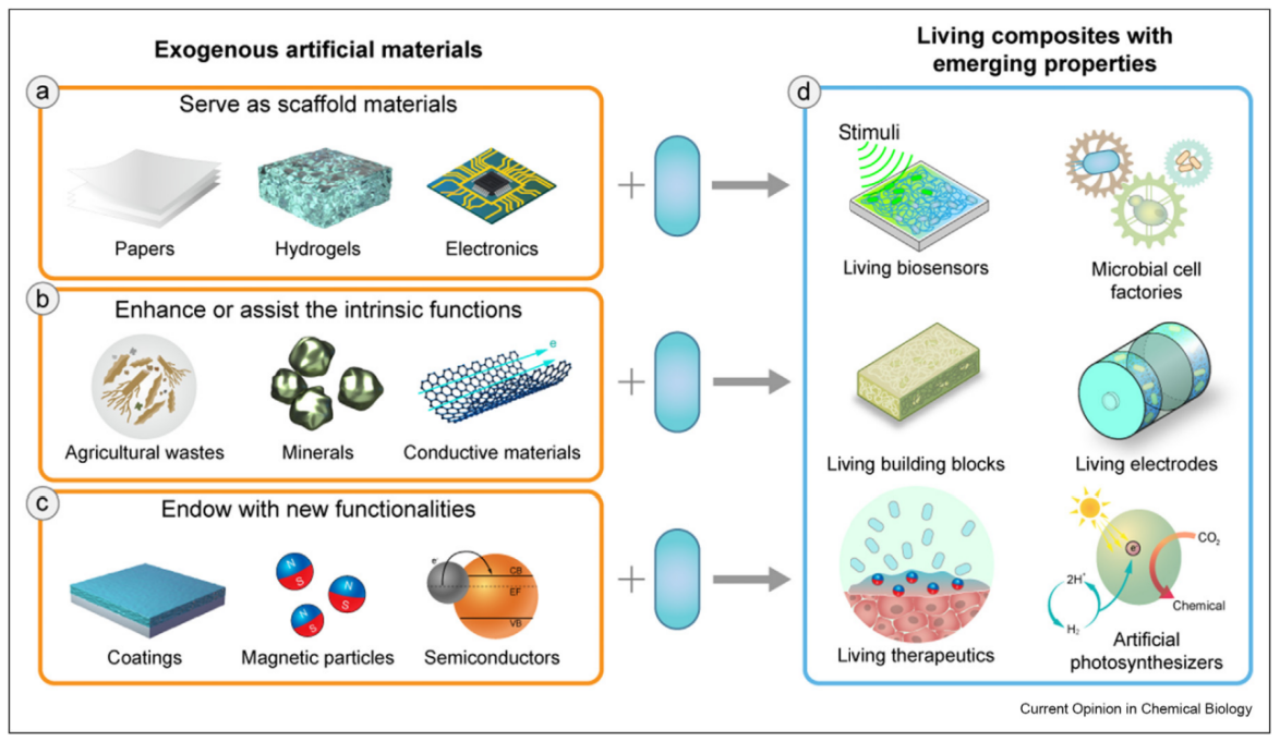 图1 | 工程内源性生物材料来赋予活体材料新的功能