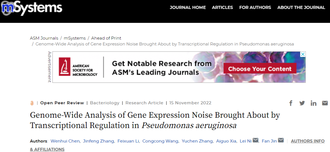 mSystems | 基因组层面测量铜绿假单胞菌的转录调控噪声