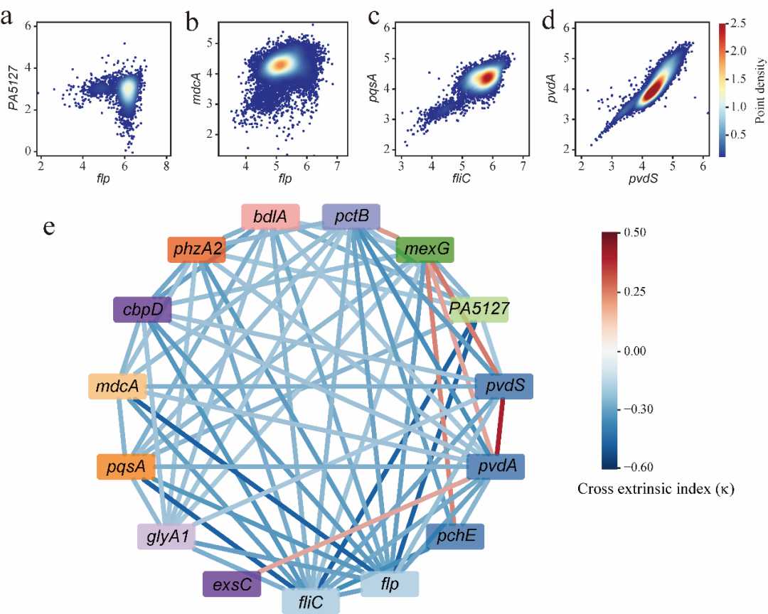 综上,该研究提供了丰富的铜绿假单胞菌在单细胞层次上转录调控噪声的实验数据,增加了对铜绿假单胞菌种群个体差异化的理解,为探究和理解细菌如何适应复杂的生活环境提供了数据支持。
