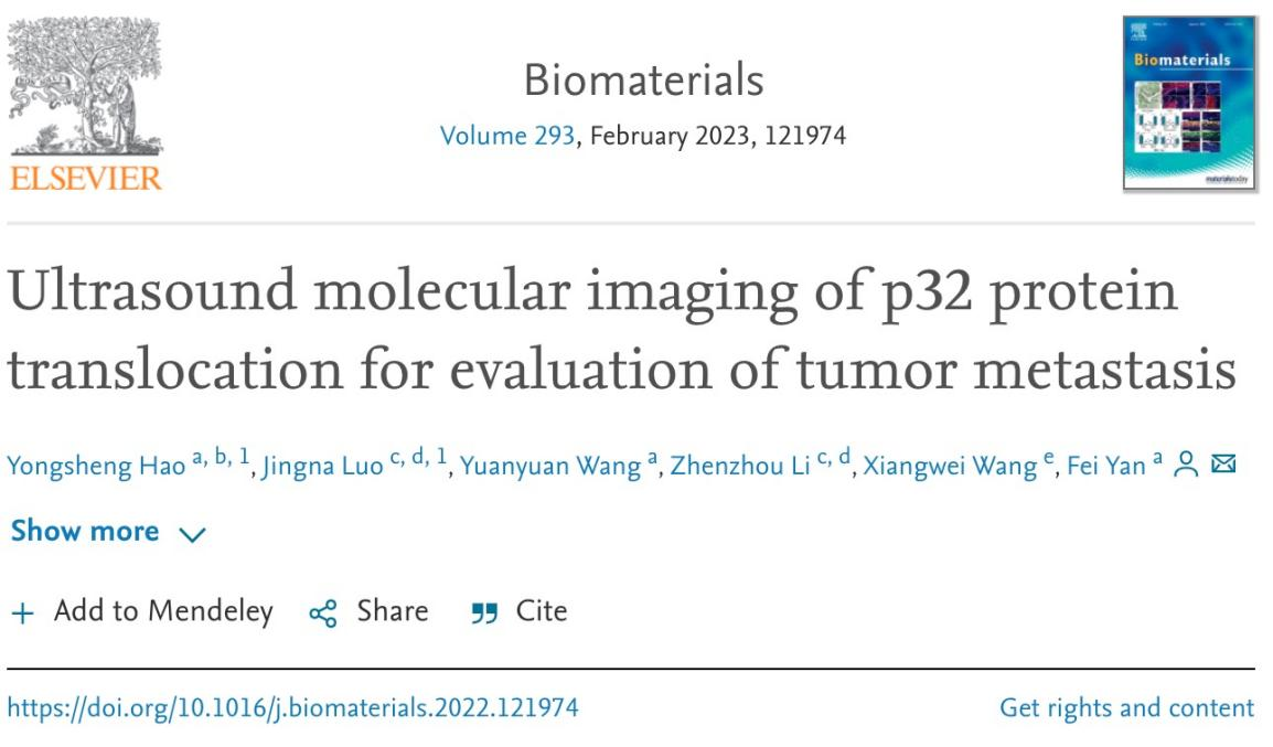 Biomaterials | 超声分子成像p32蛋白的细胞膜易位可预测肿瘤的恶性进展
