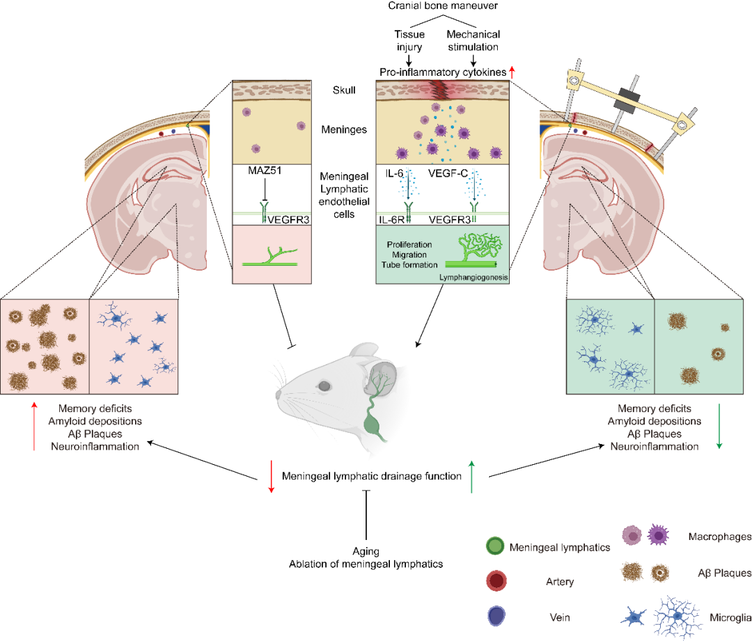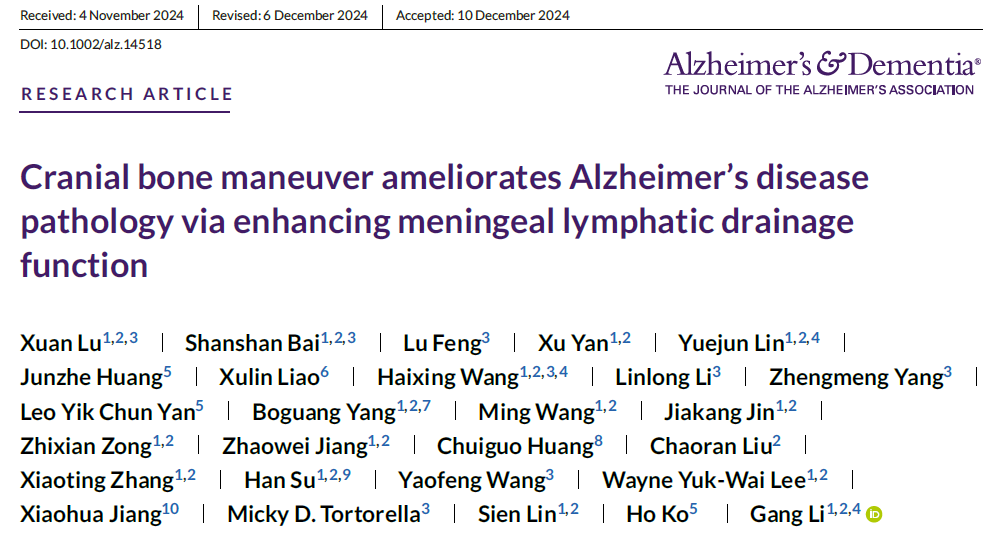 Alzheimer's & Dementia | 颅骨搬移技术通过增强脑膜淋巴管功能改善阿尔茨海默病病变