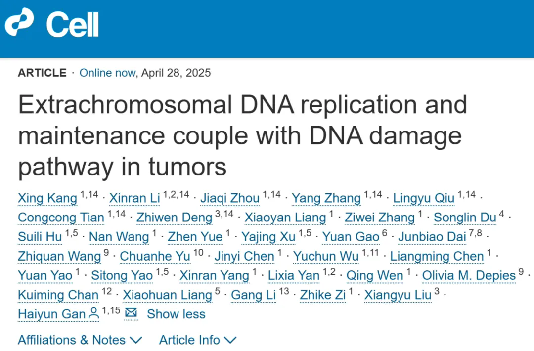 4月28日,中国科学院深圳先进技术研究院定量合成生物学全国重点实验室甘海云团队在国际学术期刊《细胞》上发表最新研究成果,团队首次揭示了ecDNA在肿瘤细胞中维持生存的关键机制,为理解ecDNA对肿瘤发生发展的作用机制提供了新视角,也为开发靶向ecDNA的抗肿瘤治疗策略提供了重要理论依据。深圳先进院为该研究第一单位。