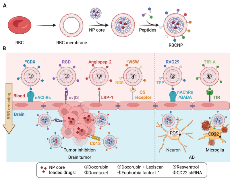 图3:红细胞膜CNPs跨血脑屏障递送药物机制示意图