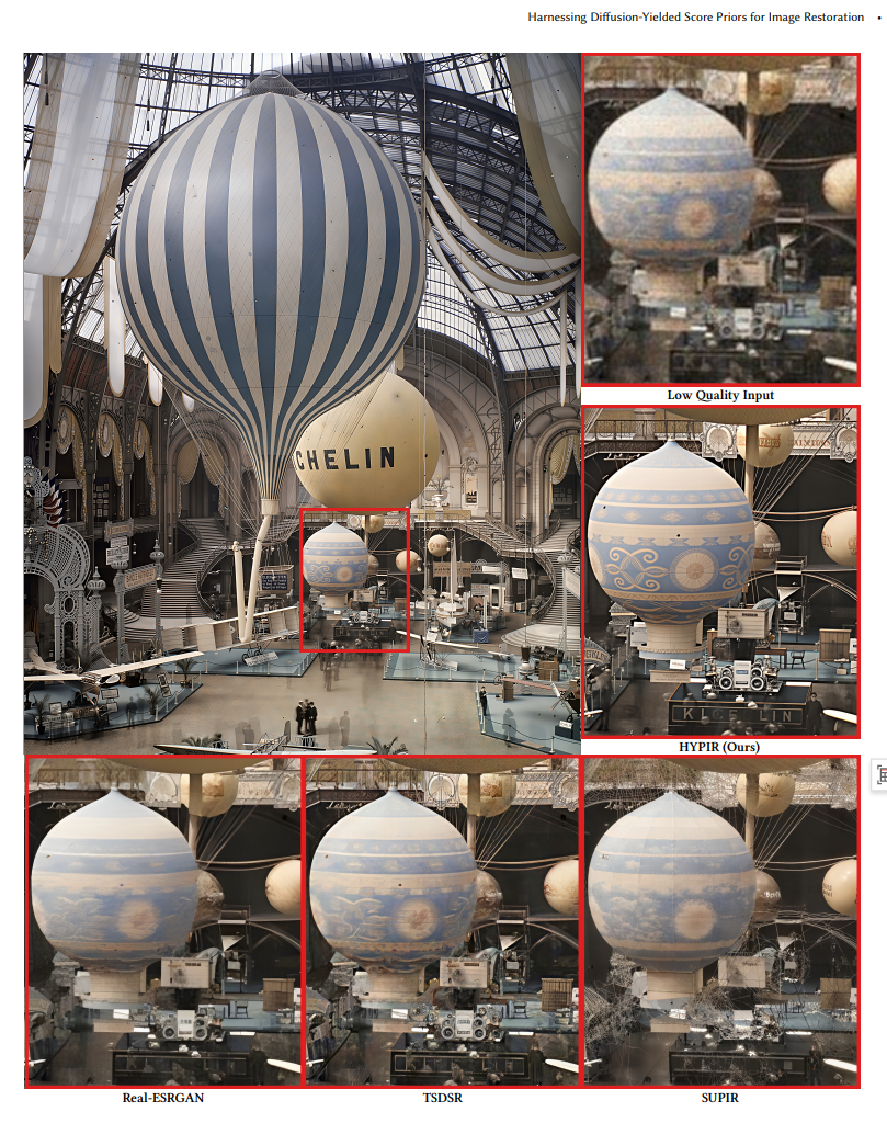 在文字保真方面,传统基于扩散模型的方法常导致复原出的文字模糊或扭曲,缺乏精确性,而HYPIR则能够使复原出的文字保持高保真度和清晰度,无论是简单的标识还是复杂的文档,HYPIR都能精准地还原其原始形态,使图像中的文字清晰可读。