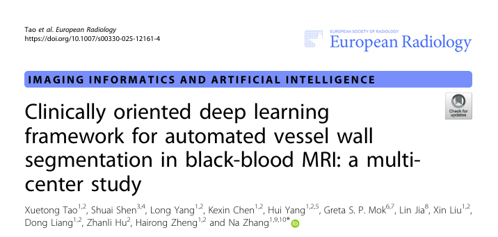 2025年11月,中国科学院深圳先进技术研究院医学成像科学与技术系统全国重点实验室张娜副研究员,开发出一套创新的深度学习框架,通过将“极坐标映射”这一数学变换引入人工智能分析系统,实现了对全脑及颈动脉血管壁的快速、精准、全自动分割。该技术通过将环形血管结构“展开”成平面进行分析,显著提升了模型对薄层血管壁的识别能力。多中心临床验证表明,该系统性能卓越,为脑卒中风险的精准评估与防控提供了高效的量化新工具。研究以 "Clinically Oriented Deep Learning Framework for Automated Vessel Wall Segmentation in Black-Blood MRI: A Multi-Center Study"为题,发表于国际影像学领域权威期刊European Radiology。