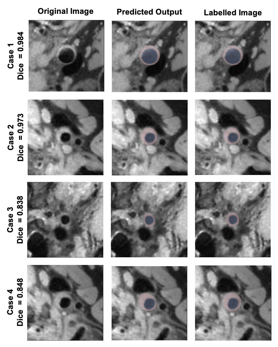 图3:典型病例中自动分割结果与专家手工标注的一致性对比图