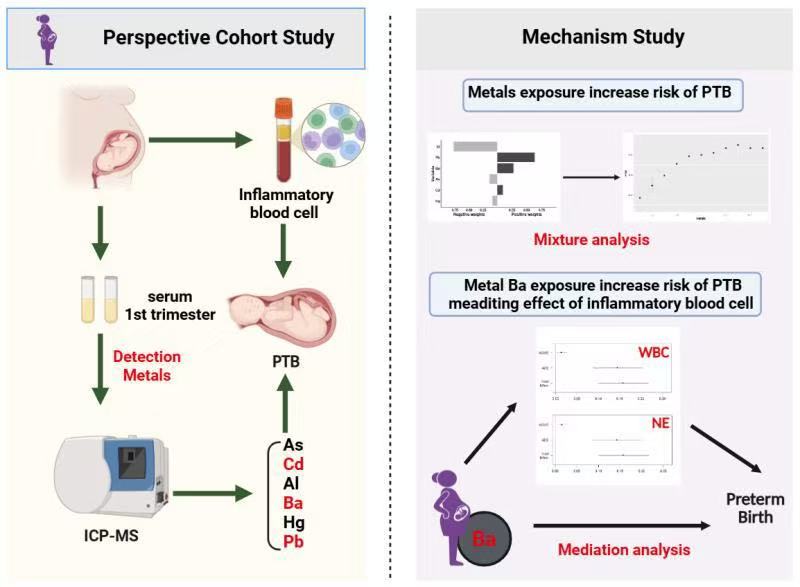 Journal of Hazardous Materials | 研究揭示孕早期血清金属暴露致早产新机制:炎症血细胞参数为关键介导因子