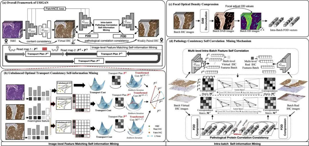 图2: USIGAN方法整体流程示意:从非平衡最优传输的循环传输策略与批次内光密度一致策略