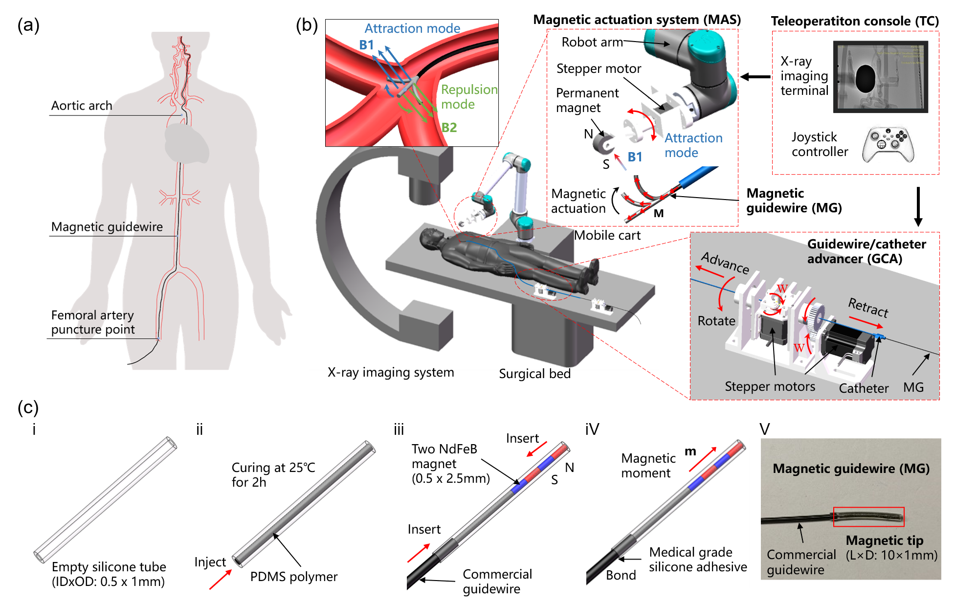 团队提出了一种具有磁驱动主动转向和自主推进能力的磁性介入导丝机器人系统。