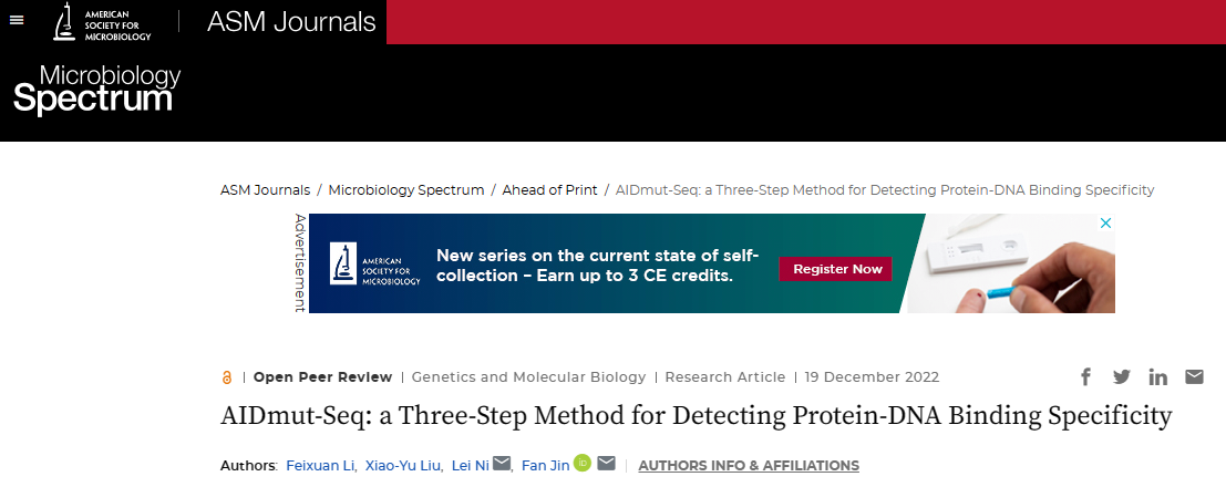 12月19日,中国科学院深圳先进技术研究院合成生物学研究所金帆课题组在国际学术期刊Microbiology Spectrum上发表了题为《AIDmut-Seq: A three-step method for detecting protein-DNA binding specificity》的研究成果。该研究发展了一种检测转录因子结合位点(transcription factor b...